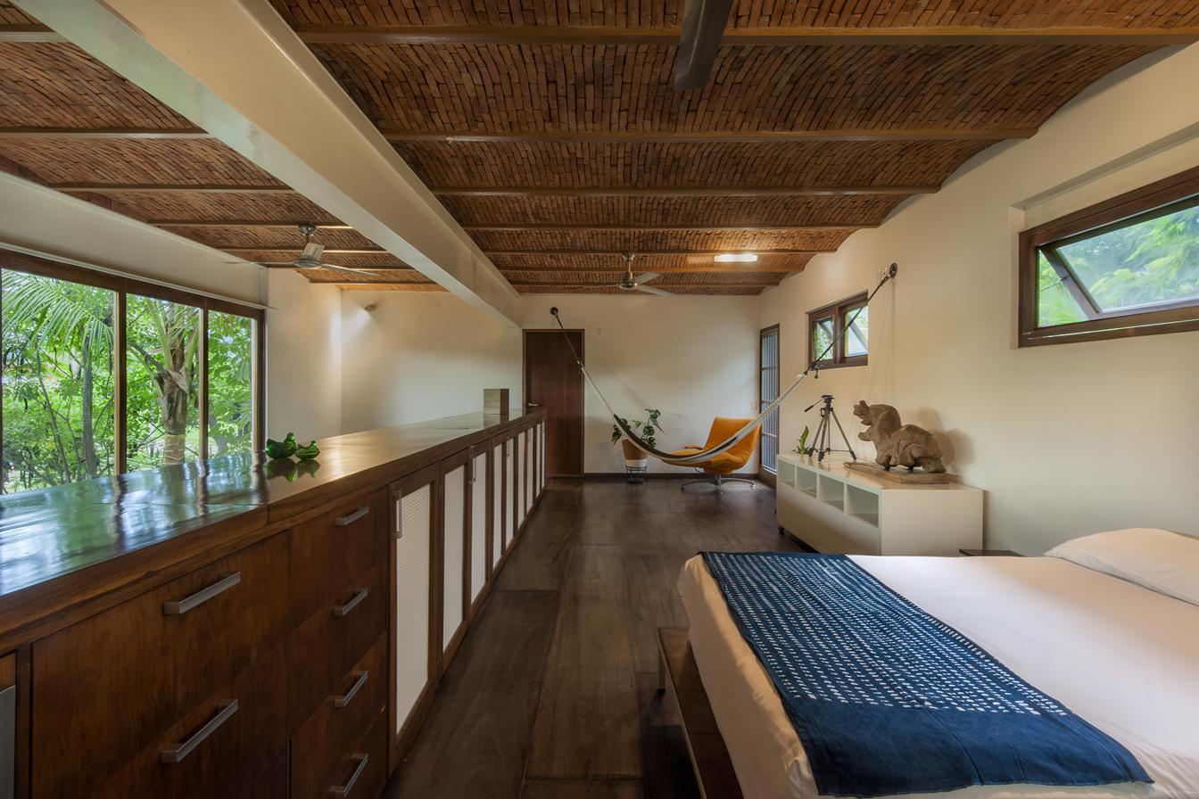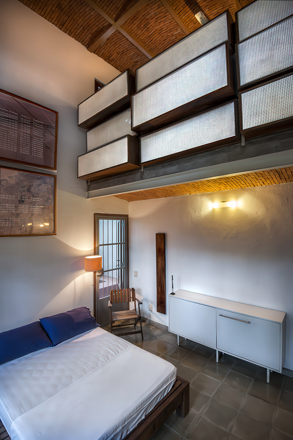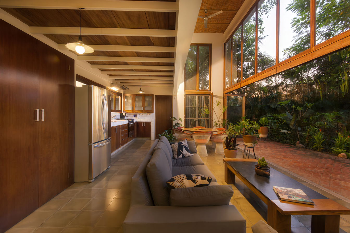 Esta vivienda ubicada en un lote esquinero se emplaza de forma diagonal al mismo al centro del espacio libre que dejan los árboles preexistentes para mejorar su orientación y aprovechar el beneficio del microclima y riqueza del paisaje natural.Es una casa tipo loft con todos sus espacios vinculados a sus jardines periféricos bajo una idea de “jardín con casa” que se contrapone a la tradicional “casa con jardín”, invirtiendo el orden de prioridad de los elementos constitutivos del ámbito habitable.El proyecto integra sistemas pasivos de ventilación e iluminación además de calentamiento solar de agua, captación del agua pluvial y tratamiento de las aguas residuales con un sistema tipo SUTRANE.